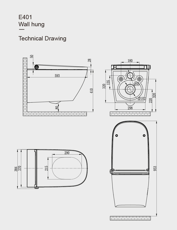 يتميز مرحاض أوشنويل E401 المزود بدش وخزان زجاجي مزدوج التدفق للاستخدام الفعال للمياه بما يلي: