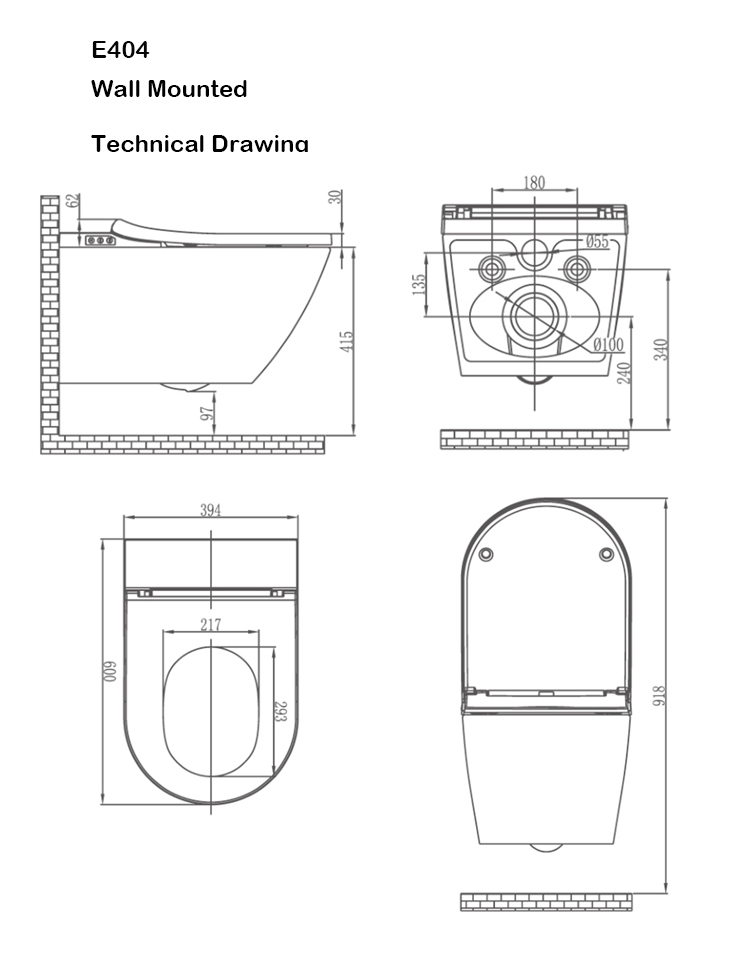 يتميز مرحاض أوشنويل E404 المزود بدش وخزان زجاجي مزدوج التدفق للاستخدام الفعال للمياه بما يلي:
