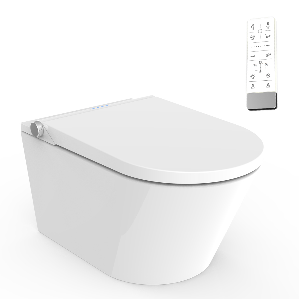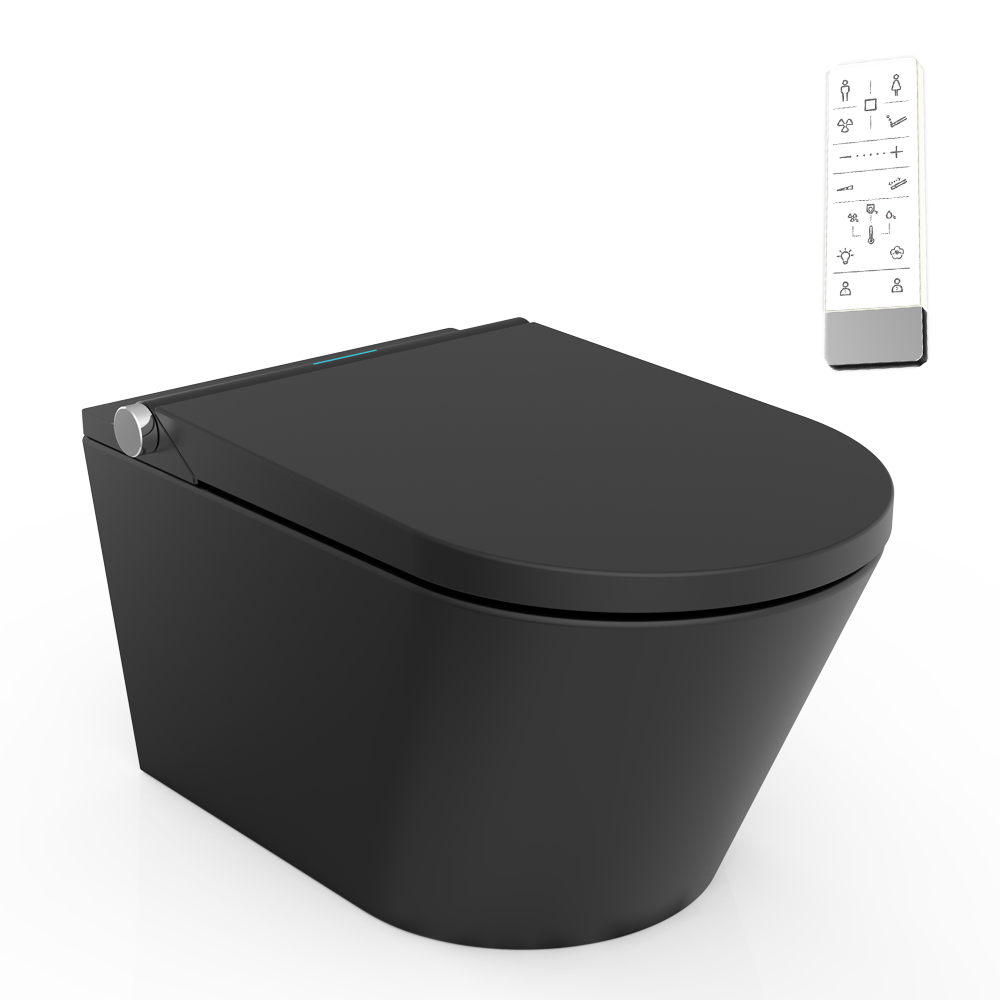يجمع هذا المرحاض الذكي المعلق على الحائط، المصمم على الطراز الأوروبي، بين البساطة الأنيقة والتكنولوجيا المتطورة. يضفي لونه الأسود غير اللامع لمسة من الفخامة الجريئة، مما يجعله مناسبًا للحمامات العصرية. يجمع هذا المرحاض بين وظائف المرحاض والبيديه: نظام شطف مزدوج (موفر للمياه)، ورذاذ بيديه قابل للتعديل (درجة الحرارة/الضغط)، ومقعد مُدفأ، ومجفف هواء دافئ. يوفر تصميمه المعلق على الحائط مساحةً ويُسهّل عملية التنظيف. كما يضمن نظام التحكم المقاوم للماء بمعيار IPX4 والمقعد المضاد للبكتيريا السلامة. يُعد هذا المرحاض مثاليًا لإضفاء لمسة من الراحة والأناقة على الحمامات ذات الطابع الأوروبي.