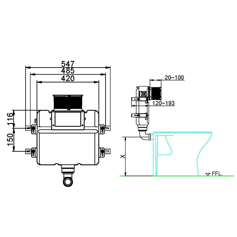 | مادة خزان المرحاض: | البولي إيثيلين عالي الكثافة |